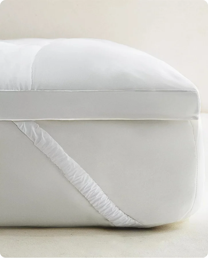 Hauteur de 4,5 cm et doté de 4 rubans élastiques dans les angles pour l’ajuster à tous les types de matelas.